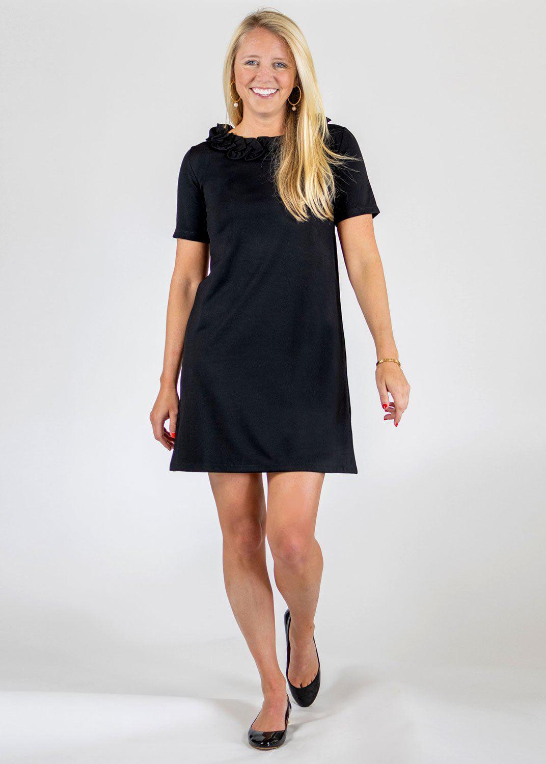 Our Kimmy Dress is sure to be a dress that you wear on repeat. The ruffled neck is darling, you will get nothing but compliments every time you wear this dress!