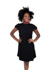 With a higher neckline, our black and red plaid holiday dress has tulip sleeves for a feminine, festive style. The Molly Collection features a plaid bow design at the nape of the neck with ends that fall beautifully. Perfect for showing off the back, this design is simply lovely with an easy to wear fit, rayon blend fabric, and gently flared hemline.