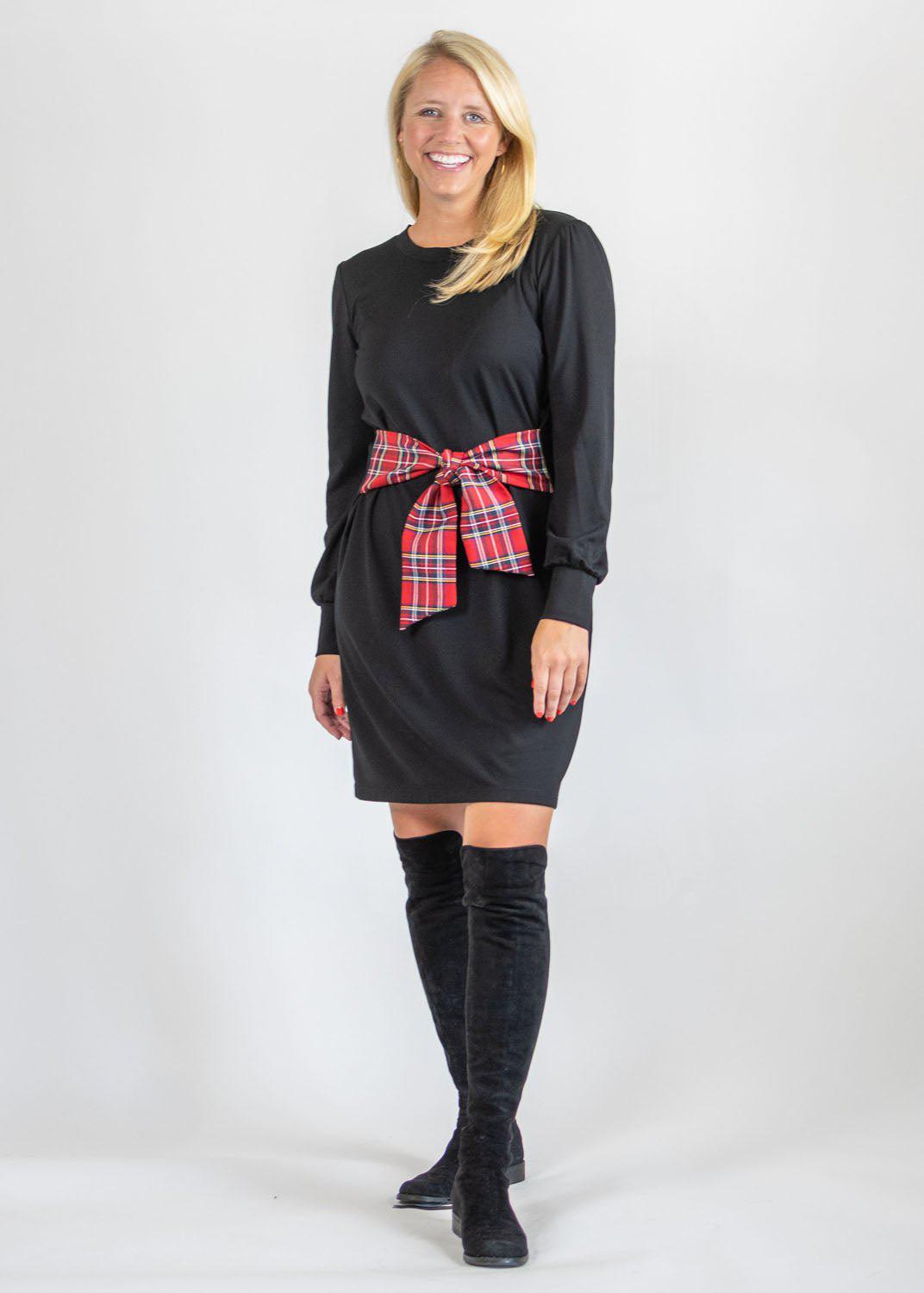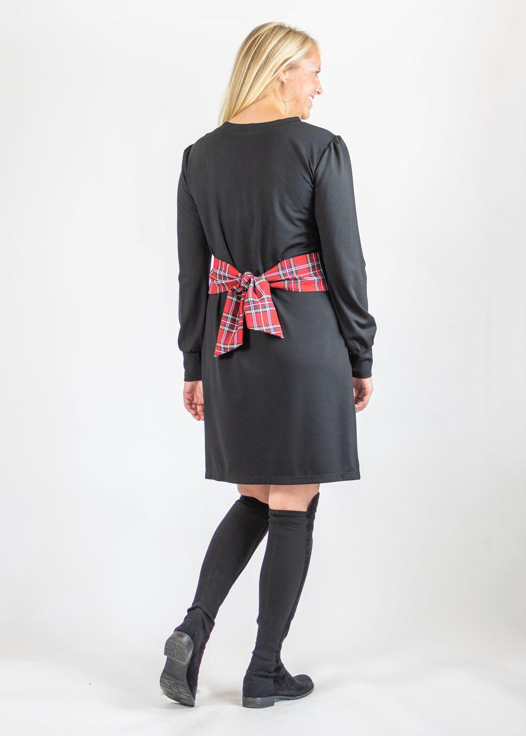 Sydney Dress - Solid Black/Red Tartan Plaid