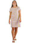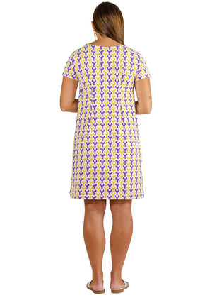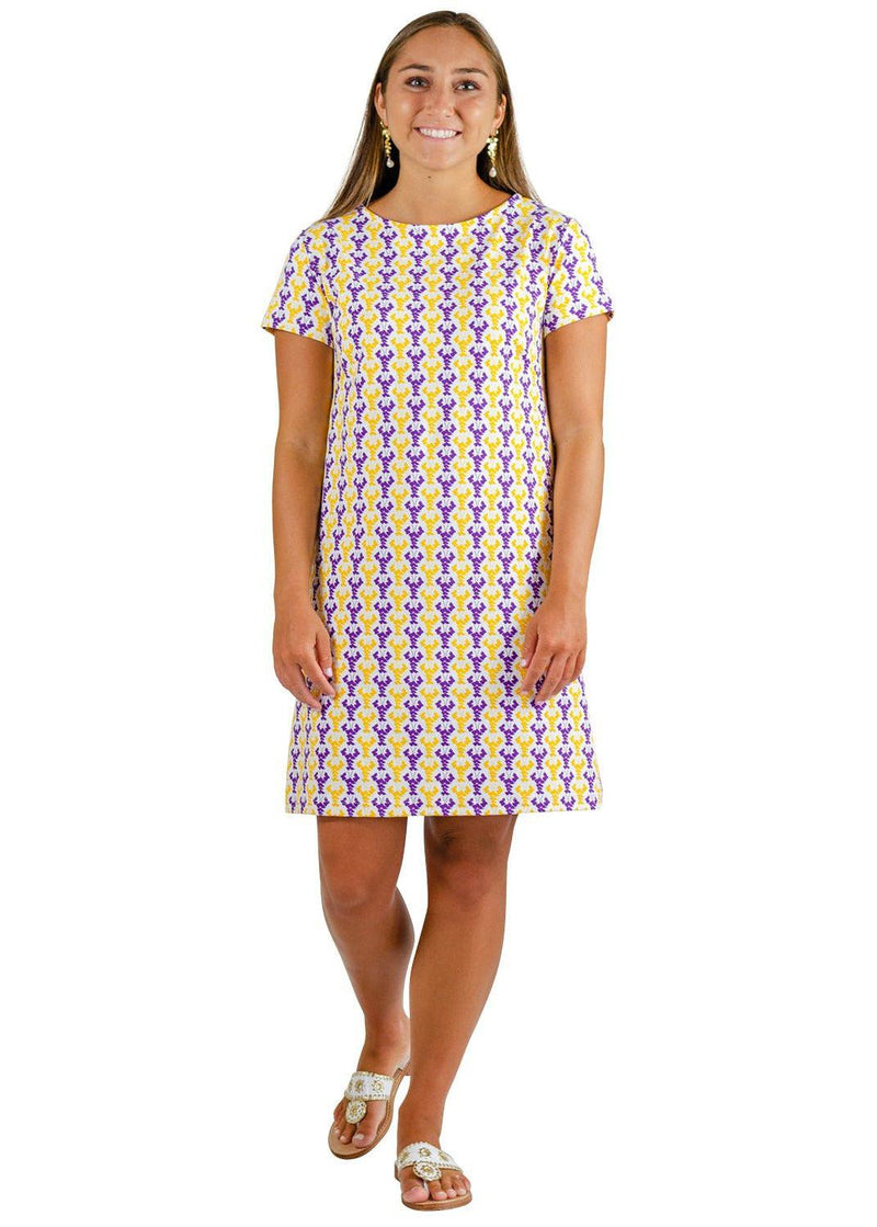 The colors of Louisiana inspire the Marina dress and the game day ready look. Created in collaboration with Honey + Hank. The dress provides UPF 50+ sun defense and moisture wicking management, so you can stay cool when the scores are close.  If you don't know Honey & Hank, here is a "little wink": Texas-based designer, Jenny Smiley, loves a good wink. In life and in design. She coined her 'design with a wink' style by creating commonly loved patterns out of uncommon shapes. At first, you see a tasteful basket weave, stripe, or floral. Looking closer, you'll see the shape of your favorite state, pastime or pet that makes up the pattern Ā the 'aha!' moment that makes people melt!