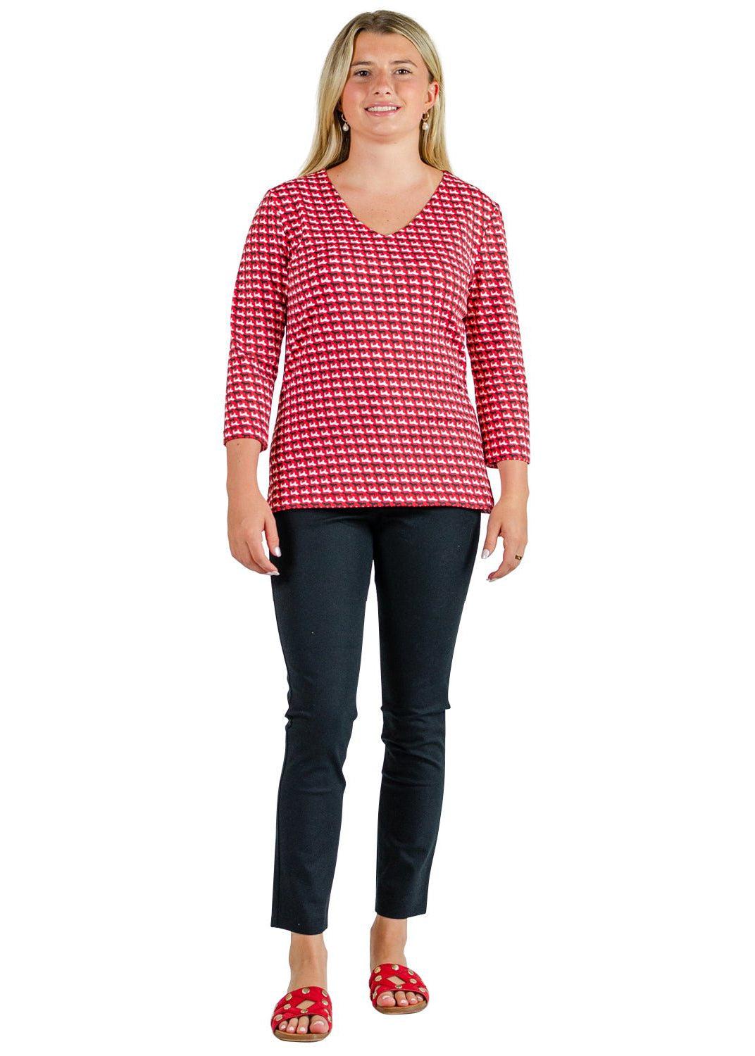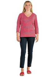 Our Bulldogs crew tee feature a comfortable fit. Designed in black, red, and white, this classic top is a game changer with 3/4 length sleeves and V-neckline. It is a creative collaboration with Honey + Hank. The fabric is UPF 50+ with moisture wicking management to keep you cool on any given Sunday. If you don't know Honey & Hank, here is a "little wink": Texas-based designer, Jenny Smiley, loves a good wink. In life and in design. She coined her 'design with a wink' style by creating commonly loved patterns out of uncommon shapes. At first, you see a tasteful basket weave, stripe, or floral. Looking closer, you'll see the shape of your favorite state, pastime or pet that makes up the pattern Ā the 'aha!' moment that makes people melt!