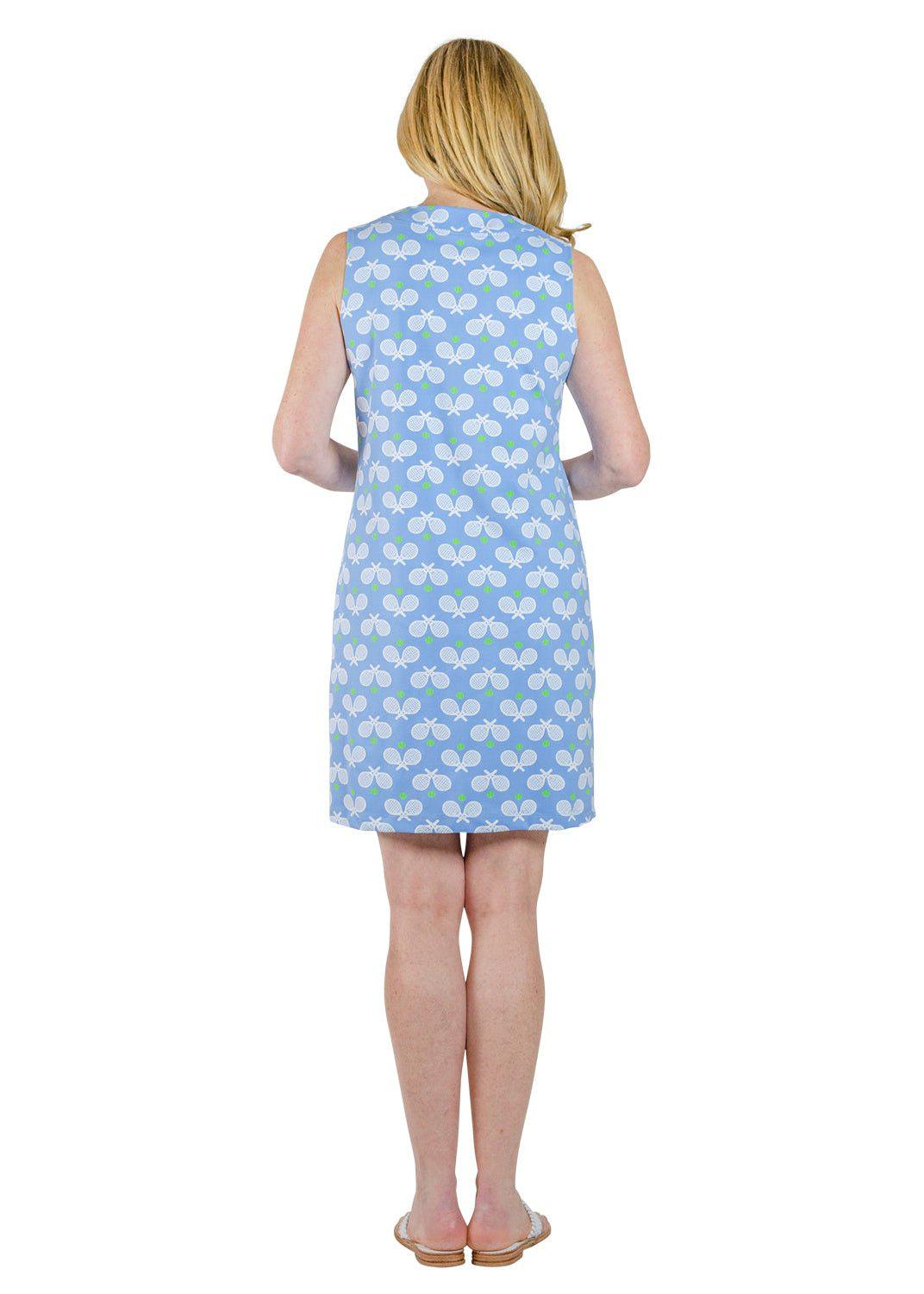 Absolutely adorable! Our themed Lucille dress is patterned with playful rackets. The cooling shades, sleeveless silhouette, and tailored neckline result in a preppy and polished look.