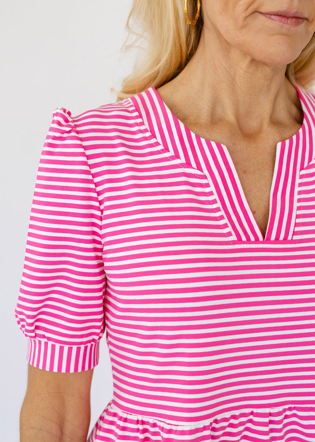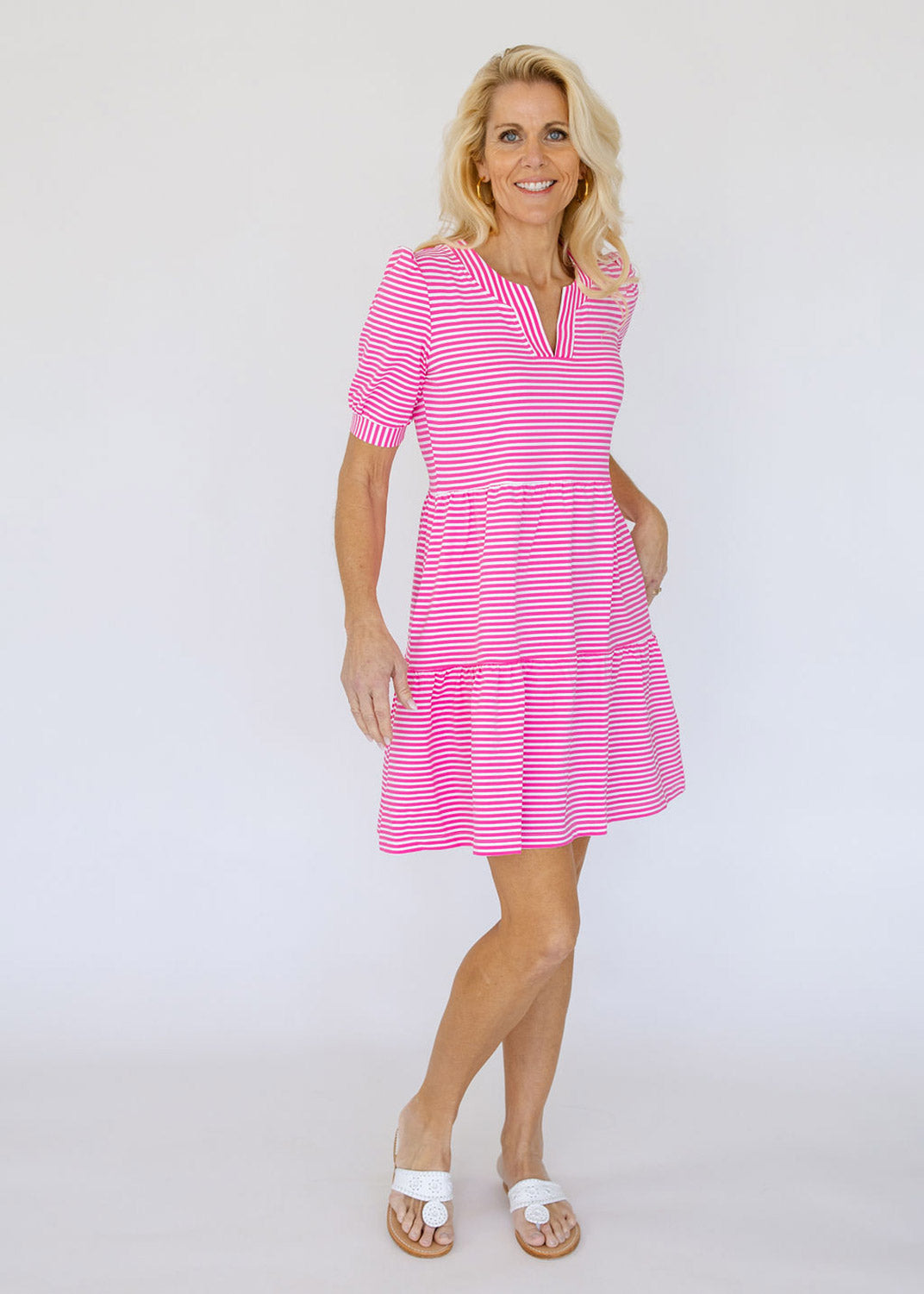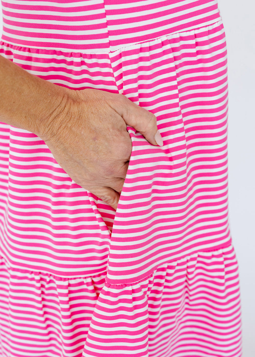 Louisa Short Sleeve Dress - Juicy Stripe Hot Stripe Pink/White