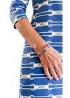 Fit and style come together to create the Lucille Collection. Exceptionally well-made, the dress has 3/4 length sleeves and an exceptional neckline. Ready to wear, the design is easy to slip on and take you anywhere. The riding motif is a expertly designed pattern created in blue.