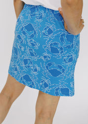 Our original skort has been updated with the new blue crabs print. This seaside style has matching inner shorts, zippered side pockets, and a confident fit you'll love to wear everywhere from the courts to the club.