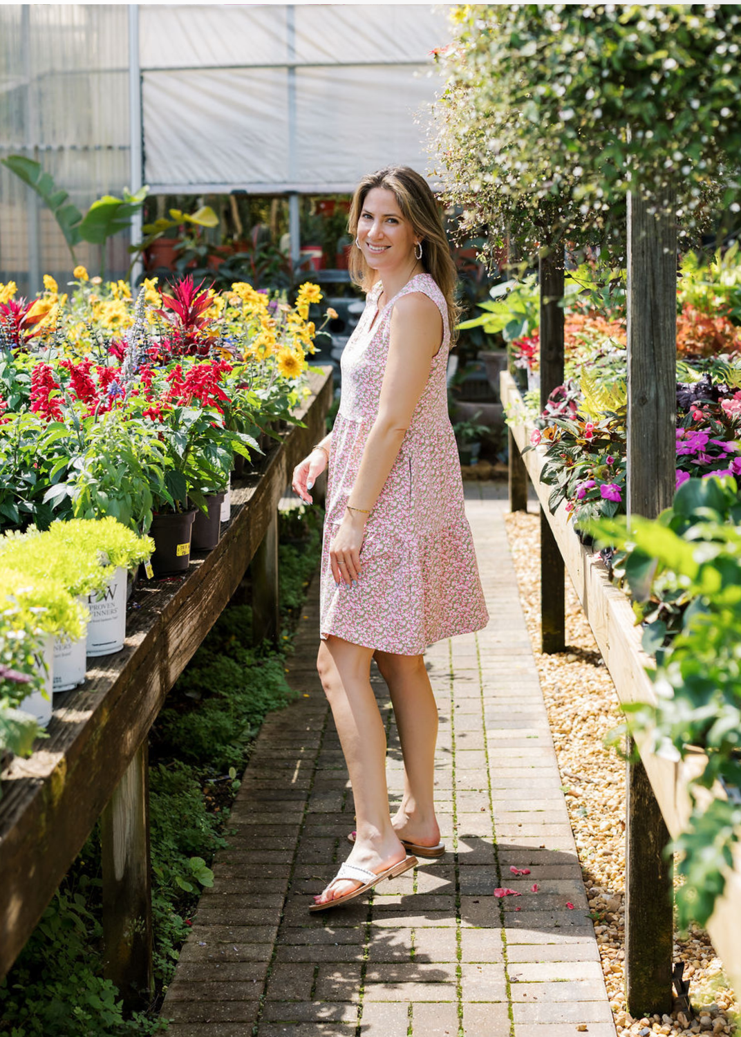 Dainty florals decorate the Louisa dress with a feminine, neutral print. The sleeveless design has two pockets, a tiered silhouette, and lots of twirl!