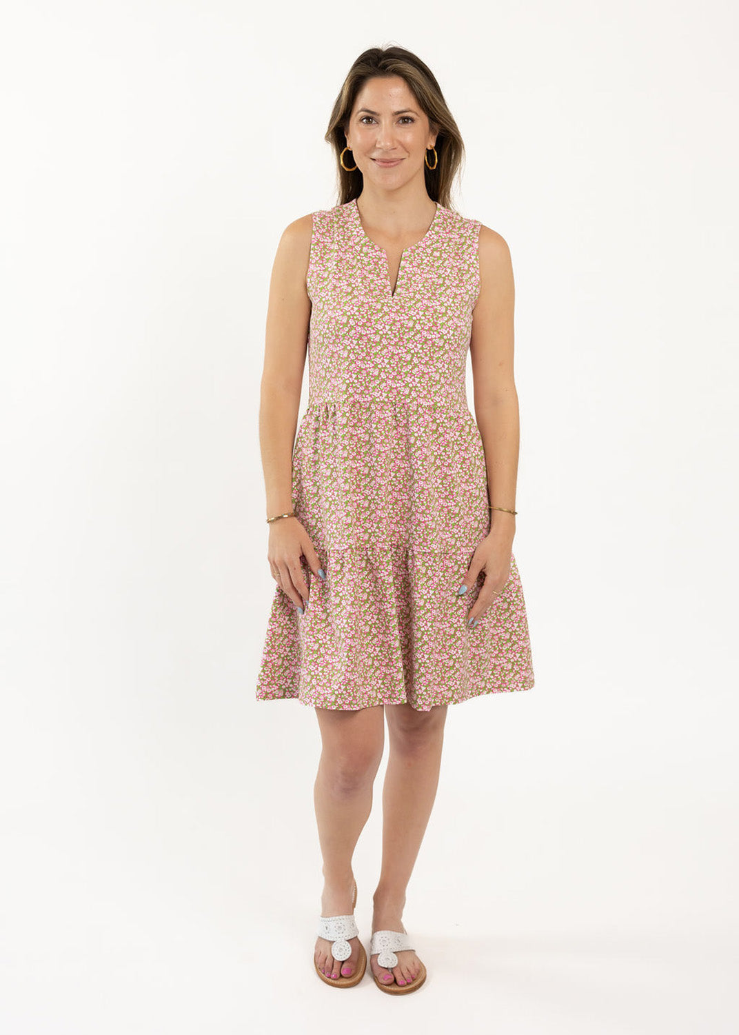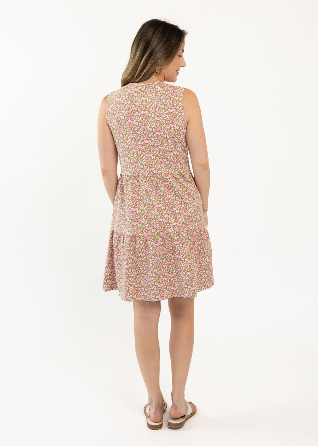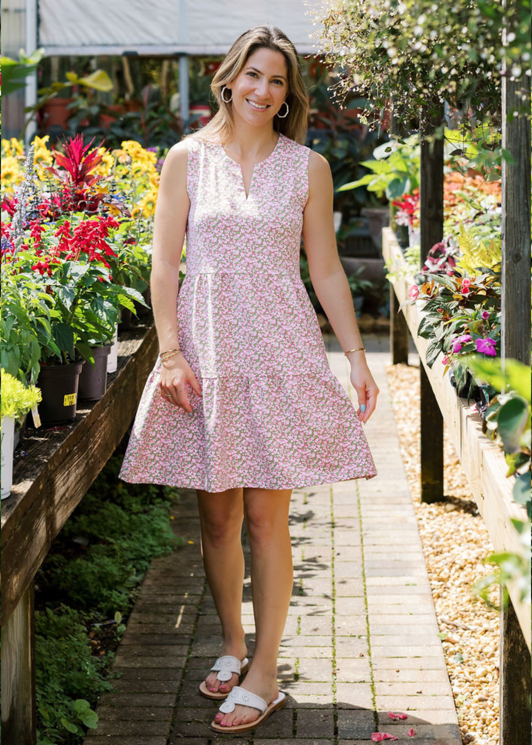 Louisa Sleeveless Dress - Tiny Floral Pink/Green