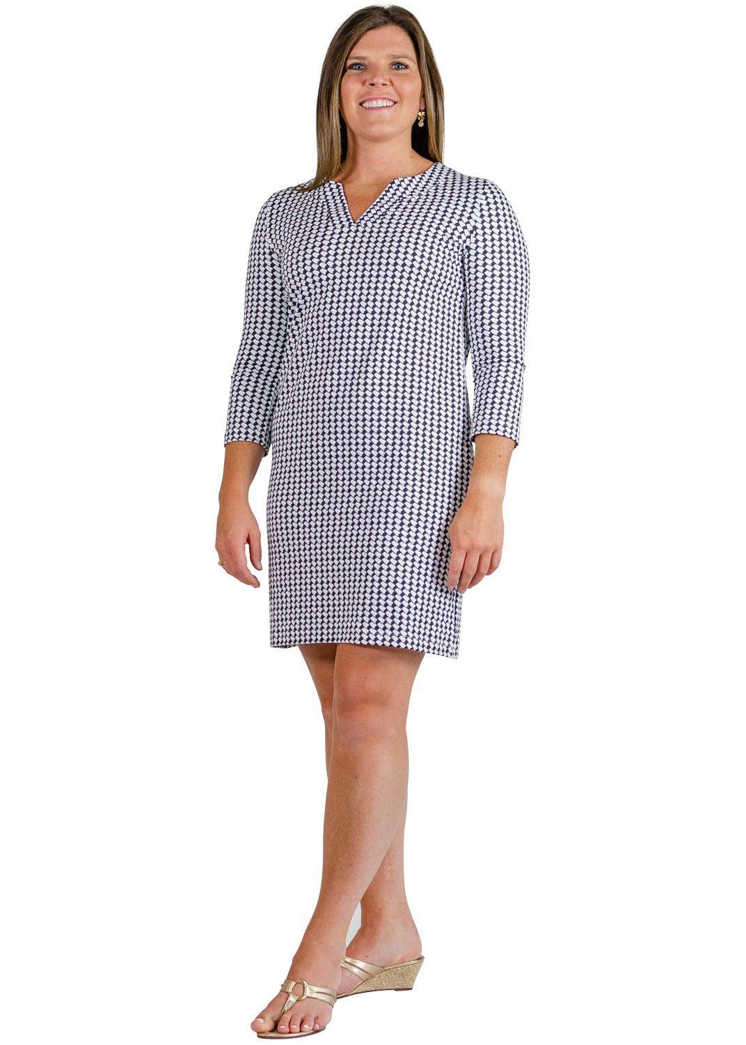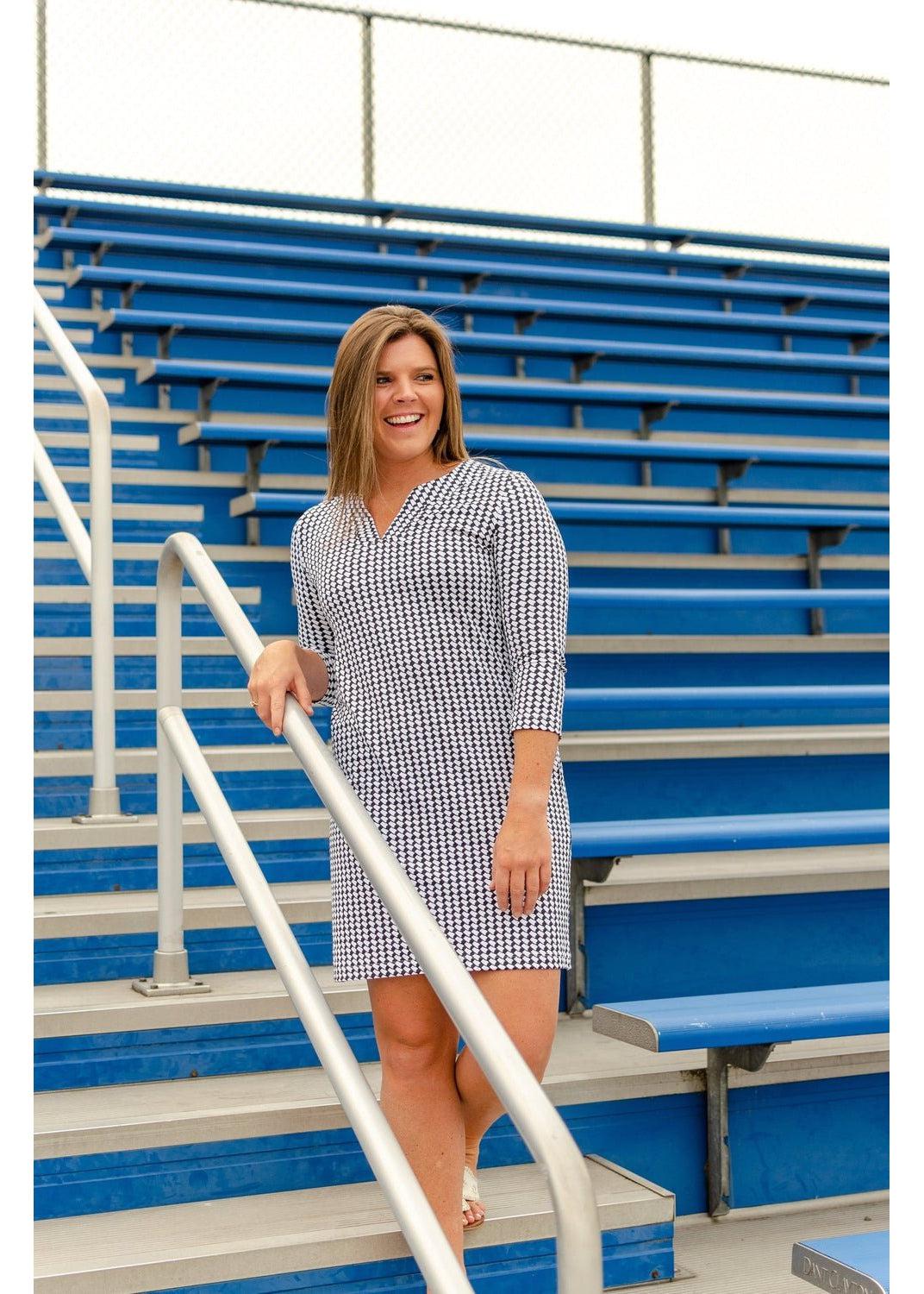 Lucille 3/4 Sleeve Dress - Alabama Houndstooth Black/White